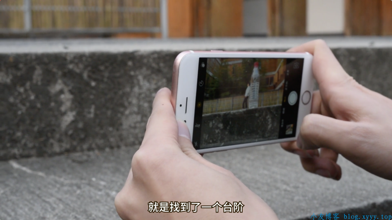 拍摄错位照片时,手机尽量保持在低角度,比如我在拍摄这张照片时,就是找到了一个台阶,从下向上拍的。