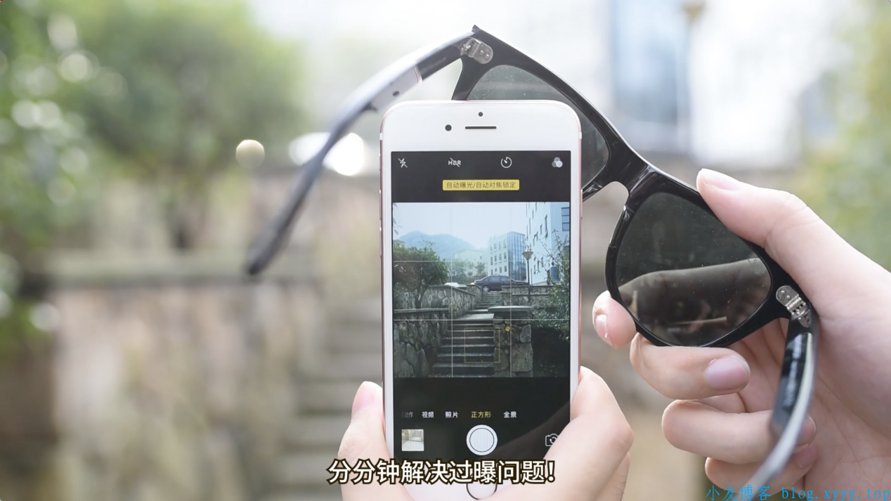 b、也可以戴个墨镜,不是给自己带,是给手机戴墨镜。