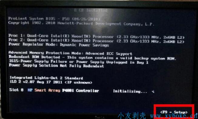 1、重启服务器在出现以下画面时按F9(红色标记处)进入BIOS界面