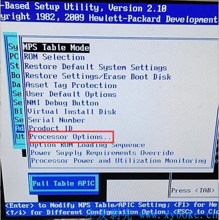 3、在以下图选择 Processor Options(红色标记处) 回车