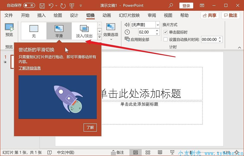 PowerPoint的「平滑」过渡也可以使用(平滑过渡也是365专属功能)