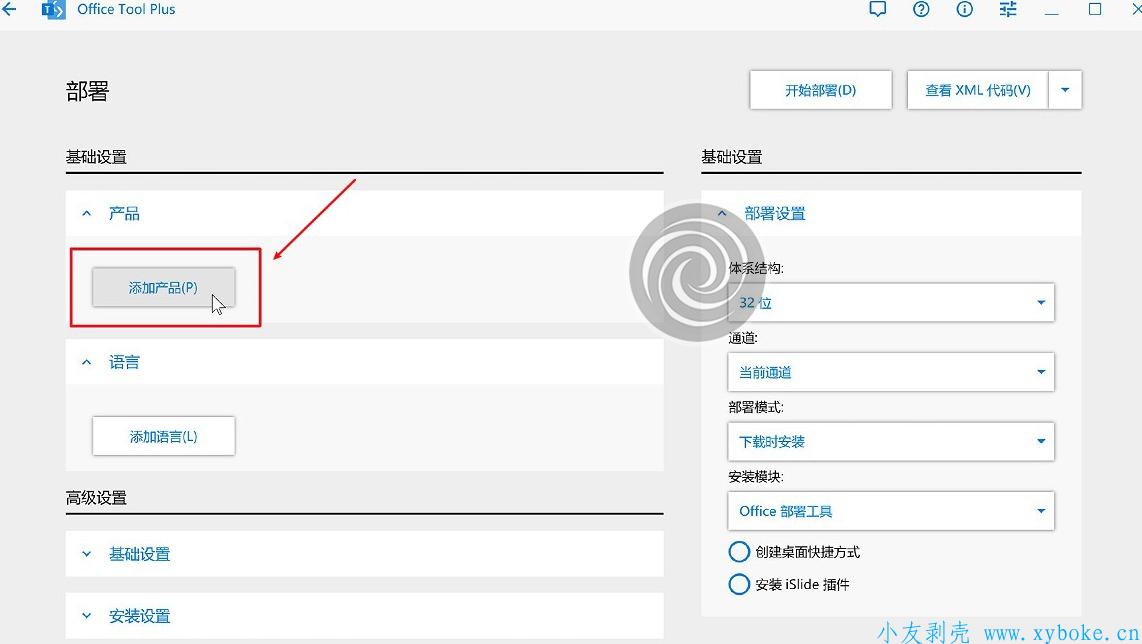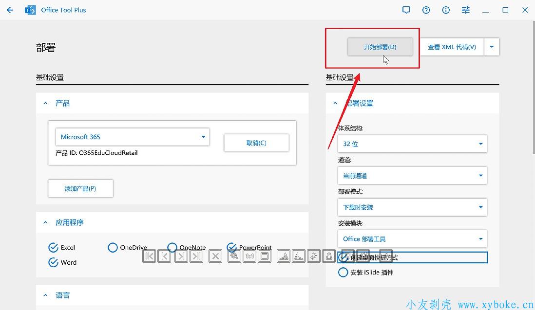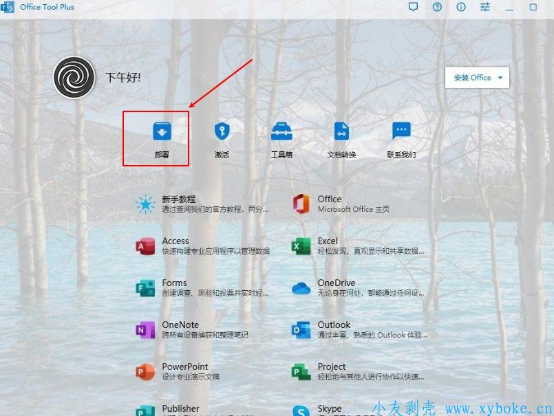 运行库组件装上之后,会自动打开Office Tool Plus软件,然后点击「部署」按钮