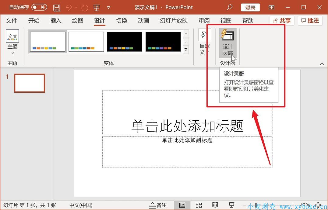 PowerPoint的「设计灵感」功能可以使用(设计灵感是365专属功能)