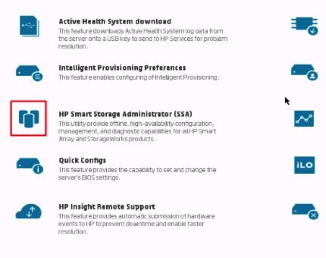 2.选择HP Smart Storage Administrator(SSA)如下图: