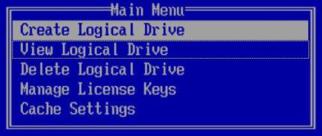 按F8进入阵列配置界面,选择Create Lgical Drive,回车继续。