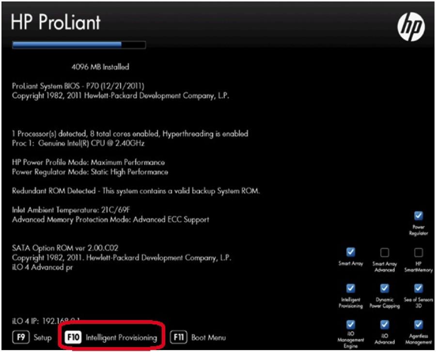 - 开机自检检测到HP Smart Array P410