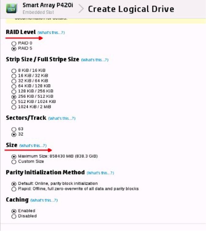 9.RAID Level:设置raid的类型。Size:设置此阵列的大小,一般默认即可。
