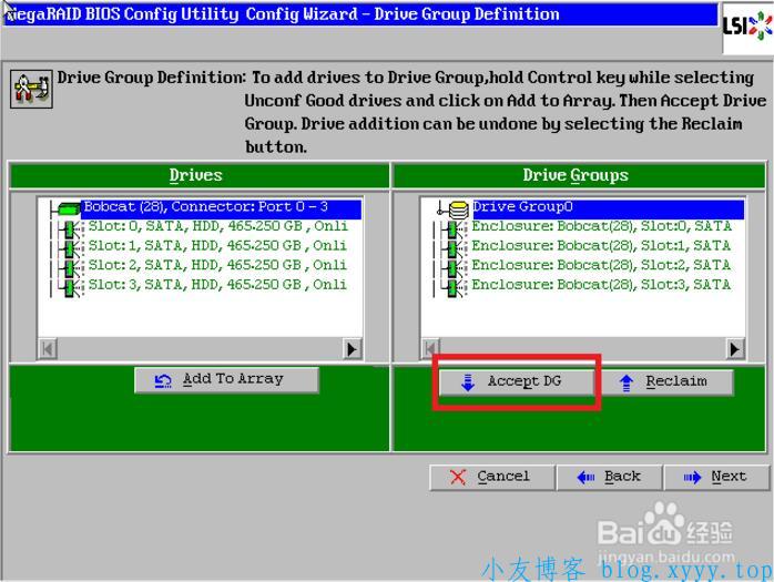 8、点击【Accept DG】,创建磁盘组