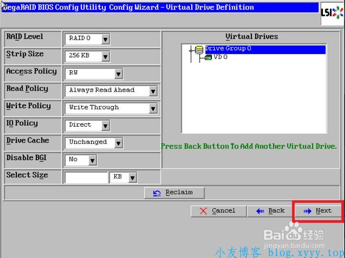 12、阵列参数配置:第一个参数“Raid Level”选择Raid5,其余保持默认(本次以RAID 5为例)
