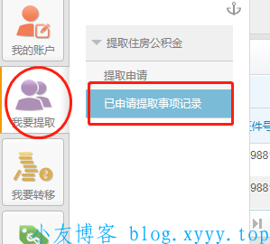 8、再次选择我要提取,确认下是否已申请,选择已申请提取事项记录