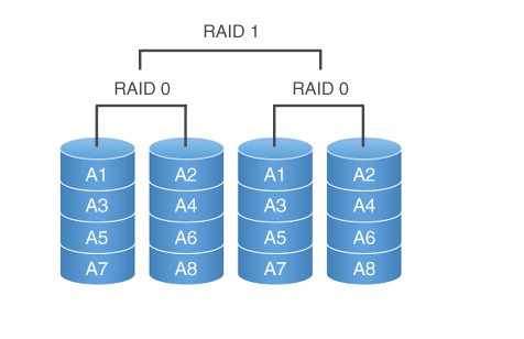 RAID01 是先做条带化再作镜像,本质是对物理磁盘实现镜像